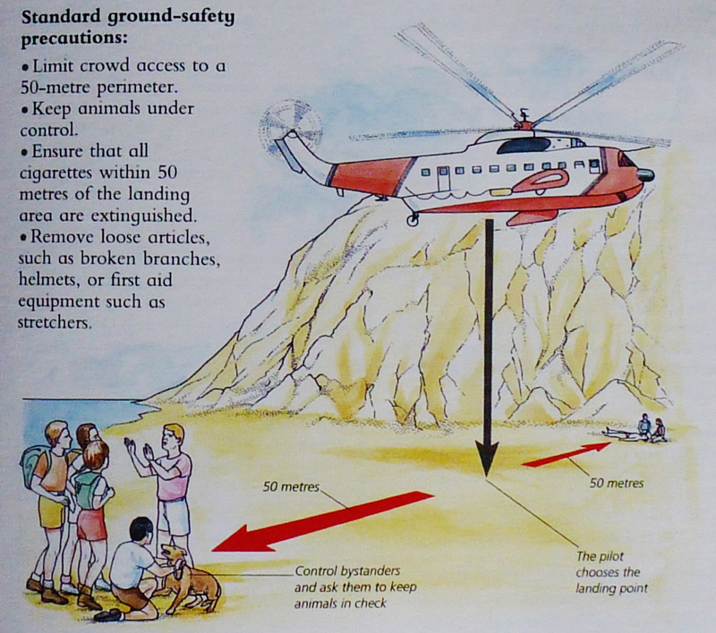 There are nine pages on preparing, loading and carrying stretchers, but the most surprising feature is the full page on managing a helicopter landing: